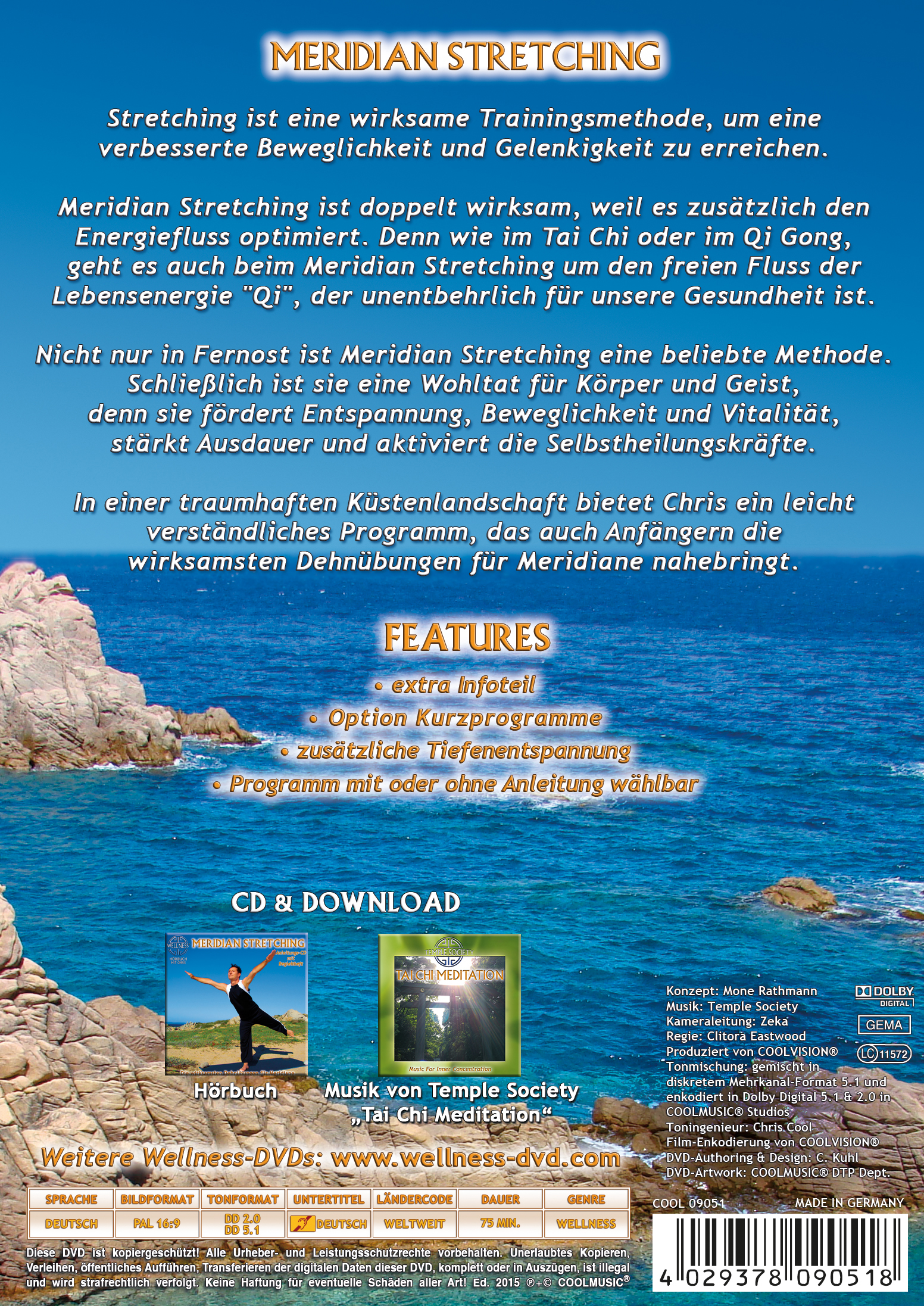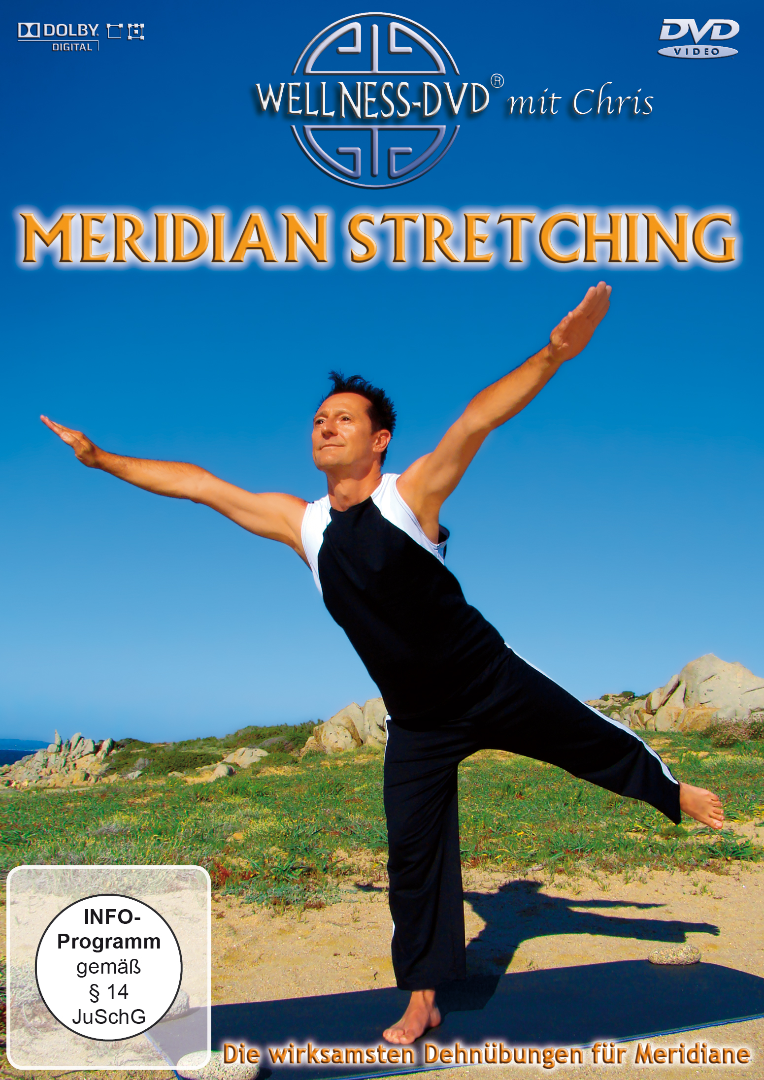 An der Traumküste Sardiniens bietet Chris ein leicht verständliches Programm, das auch Anfängern die wirksamsten Dehnübungen für Meridiane nahebringt.